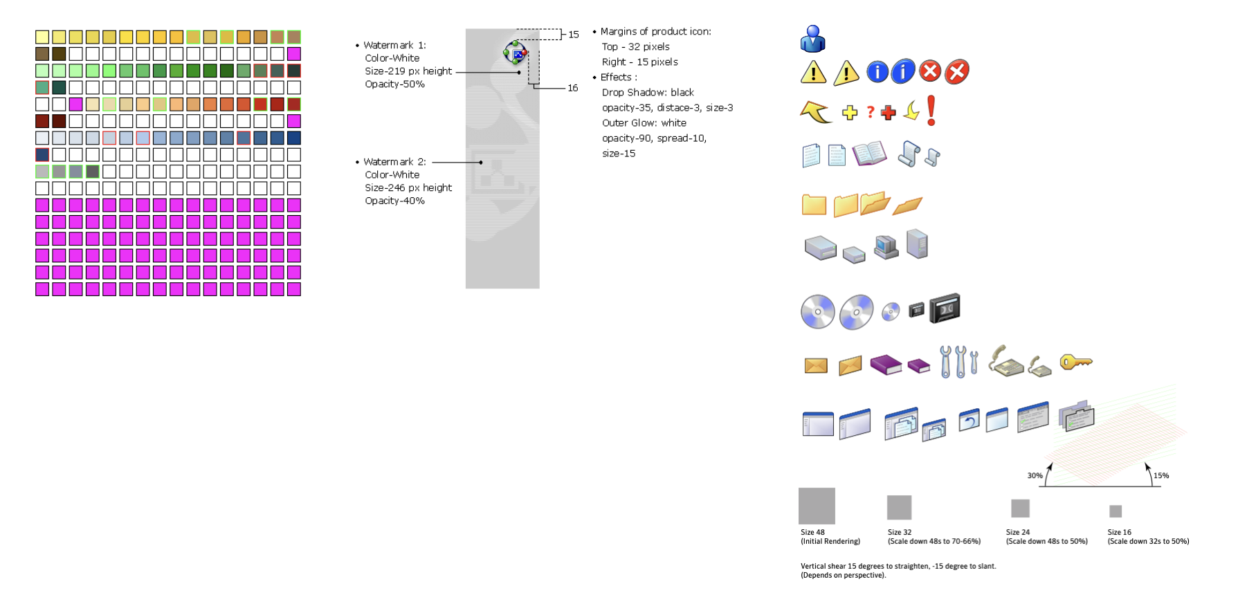 When I had started making icons they were 8 and 16bit icons, at the time Photoshop was the preferred tooling. To create a final icon color pallet had to be predefined and magenta was the knock out for transparency. Once this was done multiple sizes had to be produced for the various places the icons would live in the product.
